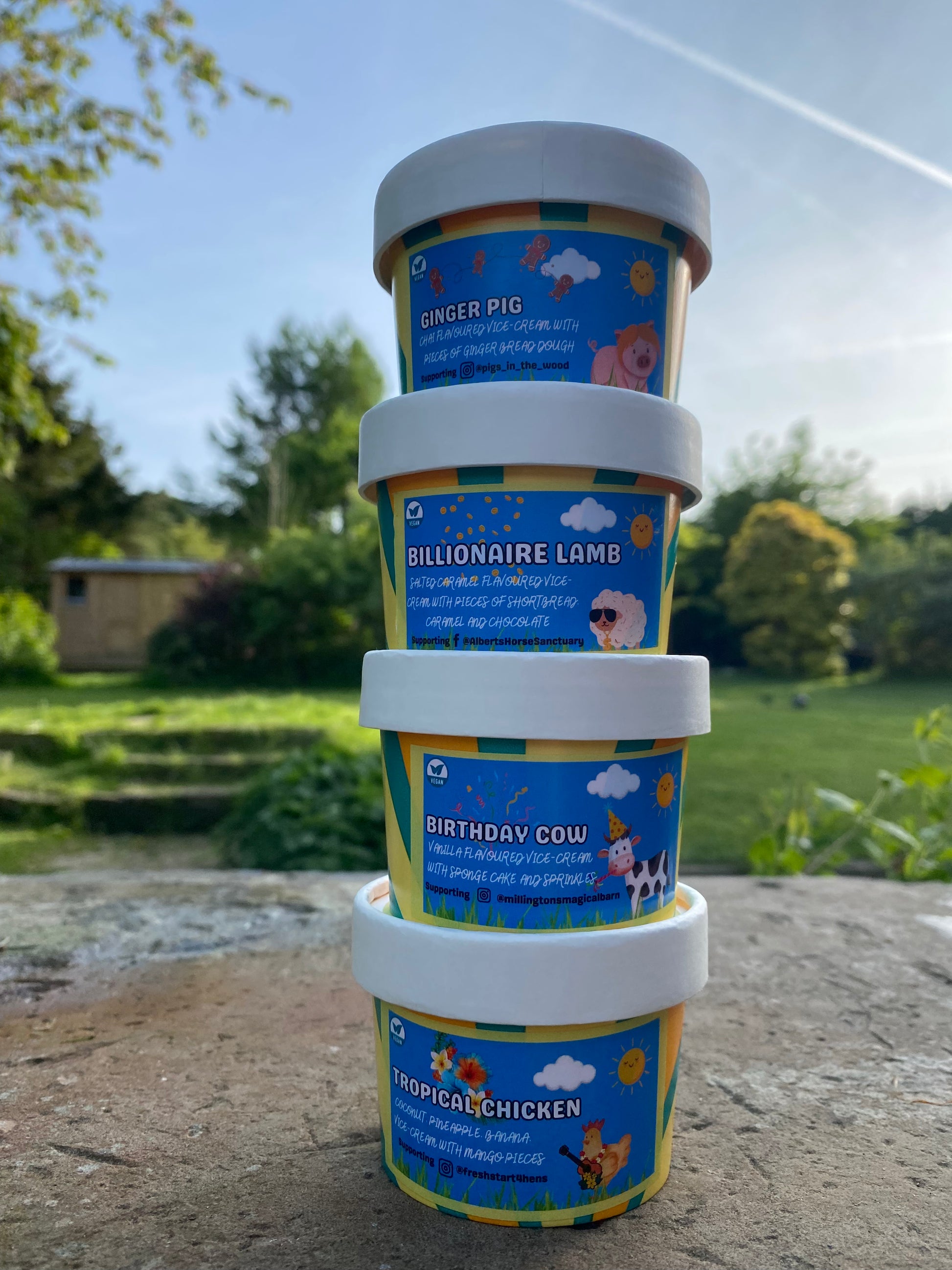 10% of the profit of our vegan icecreams go directly to local animal rescue charities.